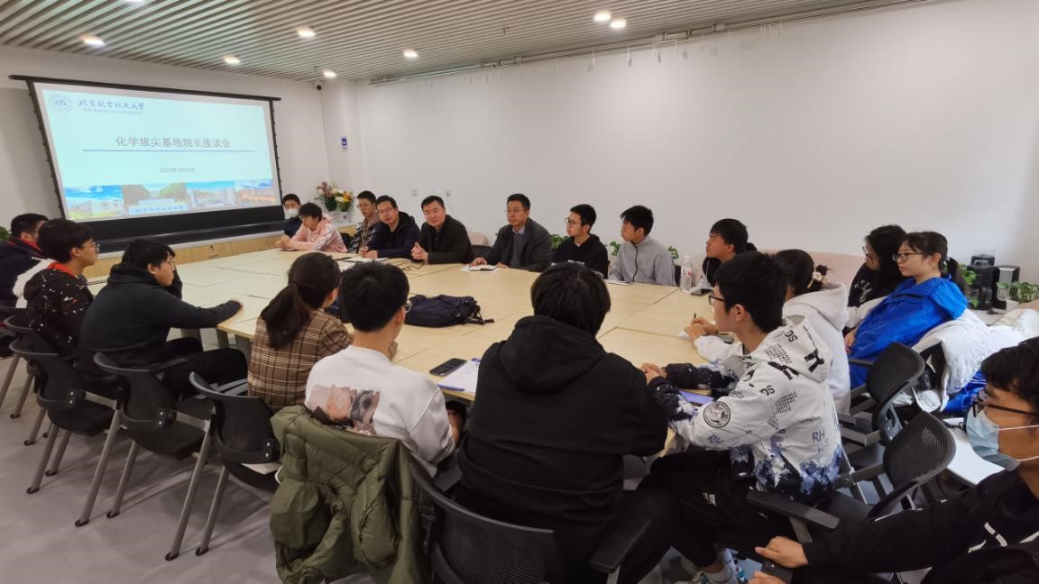 3月21日上午,Beat365唯一官方网站于沙河校区举办“化学拔尖学生座谈会”,围绕学业发展、校园生活和未来规划等一系列话题进行交流。Beat365唯一官方网站院长刘明杰、副院长田东亮、党委副书记张绍丽、小班辅导员吴宇凡及小班全体同学参会。