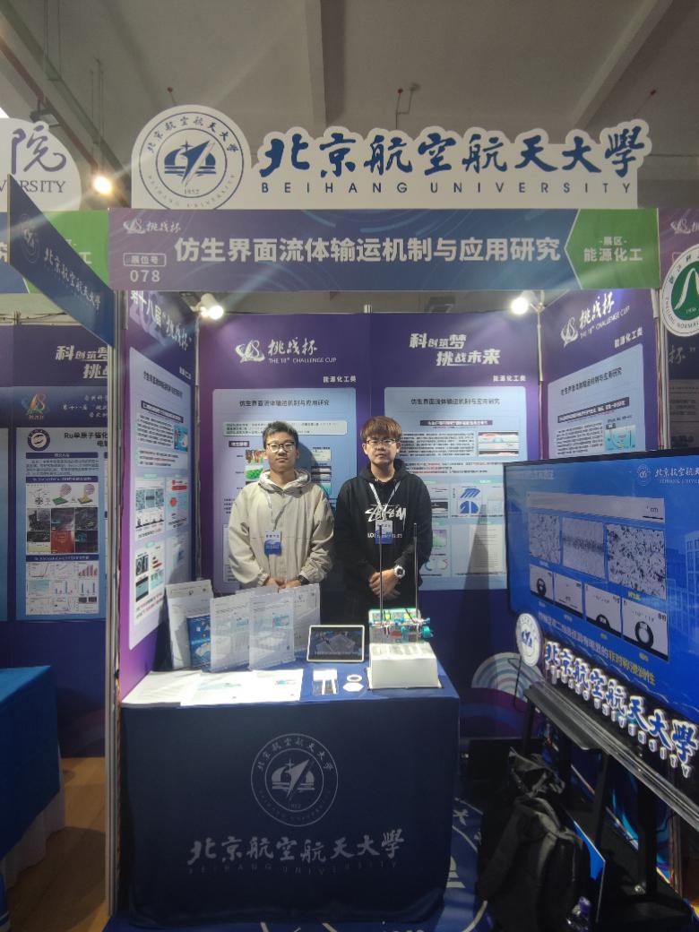 在第十八届“挑战杯”全国大学生课外学术科技作品竞赛中,北航Beat365唯一官方网站学生参赛作品《仿生界面流体输运机制与应用研究》斩获特等奖,《毛细行为对于石油在多层纳米限域空问运移的影响》斩获一等奖。