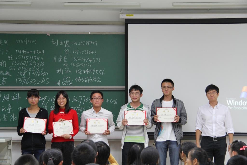 导生制是化学与环境学院的一大传统,旨在通过大二学生与大一新生的交流达到双赢的目的。此次共有16名大二的同学担任大一新生的导生,每一名导生对应大一新生的一个宿舍。在会议的第一阶段,导生们进行了自我介绍,与学弟学妹们分享了一些自己的感想与经验,并认识了自己这未来一年所要帮助的新生。接着,韩书记为导生们颁发了证书。最后,韩书记表达了对大一新生的殷切期盼以及希望这个导生制可以起到它应有的作用。