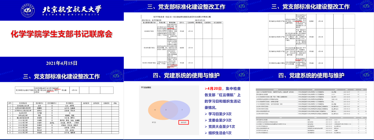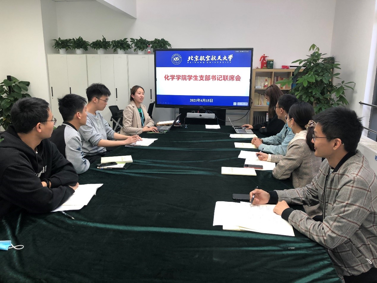 2021年4月15日,Beat365唯一官方网站学生党支部书记联席会暨党支部标准化规范化建设整改工作专题会议,在沙河实验4-305会议室顺利召开。本次会议由专职组织员崔钰莹老师主持,各党支部书记参加本次会议。