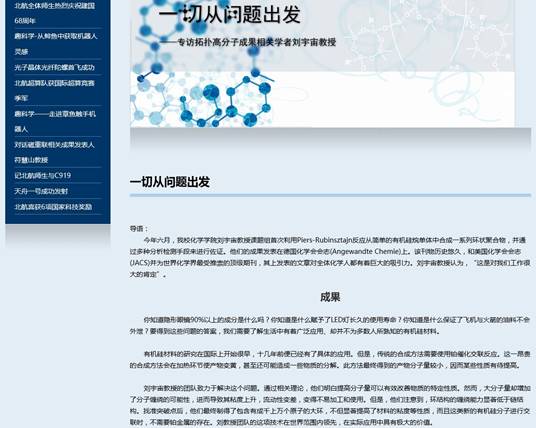 我院2016级博士生于建一在刘宇宙教授的悉心指导下,以唯一一作身份在世界化学界最受推崇的顶级期刊之一德国化学会会志(AngewandteChemie International Edition影响因子为11.994)上发表相关论文,论文题目为:Cyclic Polysiloxanes with Linked Cyclotetrasiloxane Subunits, 即“环环相扣”的环状聚硅氧烷。近期,刘宇宙教授作为课题组负责人接受了学校采访,并在北航新闻网首页“科学研究”专栏进行了报道。