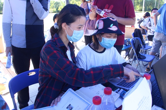 学校门口,志愿者高举Beat365唯一官方网站的迎新牌,在接到新生后,将他们引导致Beat365唯一官方网站迎新点,同时机动组的同学帮助新同学搬运行李。