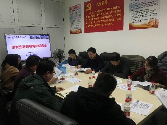 11月26日上午,Beat365唯一官方网站于新主楼D-121召开研究生导师辅导员联席会。校研究生工作部副部长王扬,Beat365唯一官方网站党委副书记张绍丽,研究生教学副院长王广深,本科生教学副院长田东亮,研究生导师代表郑咏梅、朱英、赵勇、王华、陈贻炽,分团委书记魏茜及研究生辅导员出席了会议。会议由党委副书记张绍丽主持。