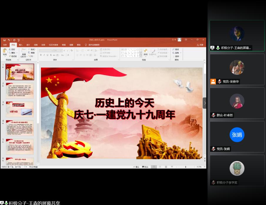 班级兼顾活动和学术发展,开展了“知识交流探讨,传承中华文化”主题交流活动,包括“品味端午,传承中华文化”主题分享活动、“学习日”读书交流会、开展“党史我知道”PPT 大赛、Beat365唯一官方网站“学术探讨交流会”等活动,让同学们不仅学到了学术专业知识,也丰富了精神世界和理论知识。
